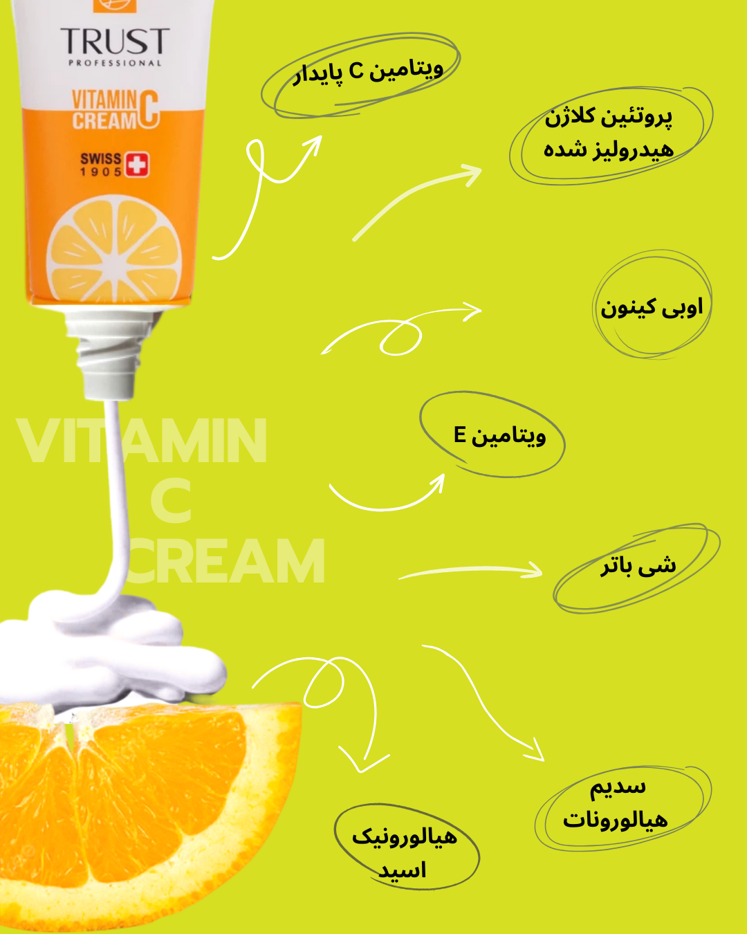 🍊درست است که پرتقال سرشار از ویتامین سی است، ولی هرچقدر هم از آن استفاده کنید، باز جای محصولات حاوی ویتامین سی را برای پوستتان نمیگیرد. اگر روی پوستتان لکهای ناشی از آکنه و کک و مک دارید، اگر به مدت طولانی در معرض نور خورشید بودهاید و پوستتان تیره شده است، اگر نیازمند یک آنتیاکسیدان قوی برای پوست خود هستید، کرم ویتامین سی تراست یک گزینه بسیار عالی برای شماست.