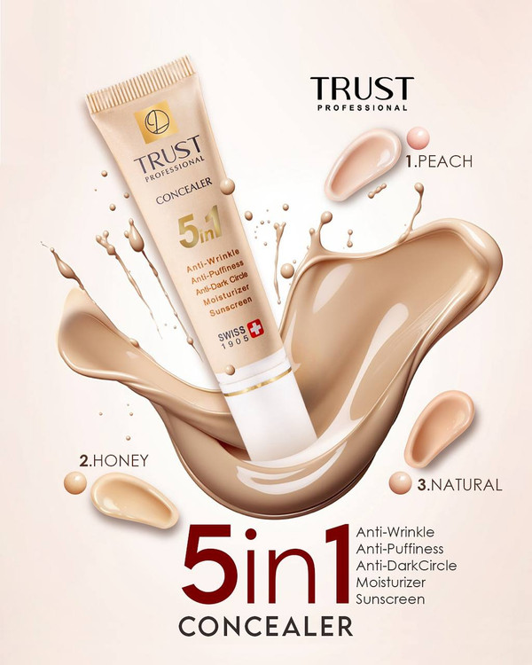 🌟برای اینکه آرایش بیعیبونقصی داشته باشید، میتوانید از این کانسیلر پیش از زیرسازی و پس از استفاده از کرم پودر استفاده نمایید. با مصرف این محصول، پُف، گودی، سیاهی و تیرگی دور چشمتان را از نظرها پنهان سازید. داشتن یک آرایش تروتمیز و بدون دردسر تنها رسالت کانسیلر تراست نبوده و میتواند چینوچروک و خطوخطوط صورت شما را هم به زیبایی هرچه تمامتر بپوشاند. همچنین برای اینکه بتوانید از پوست حساس و نازک دور چشمتان دربرابر اشعه مضر ماورابنفش خورشید محافظت کنید، میتوان از این کانسیلر استفاده کرد.